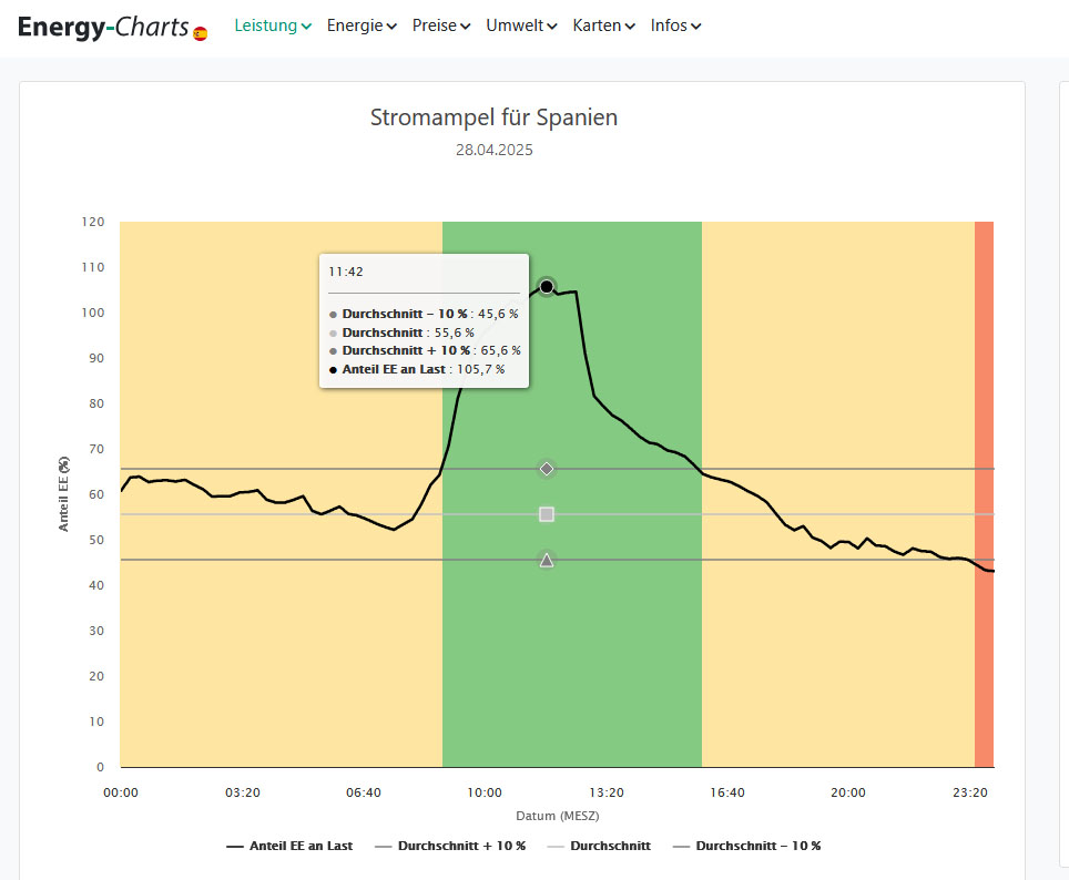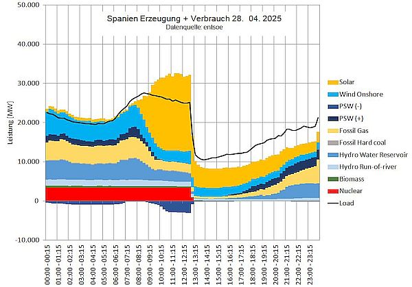 18.06.2025 - Untersuchungsbericht liegt vor, hohe Spannung im Netz gewesen. Es fehlten klassische Kraftwerke mit Turbinen, die Überspannungen im Netz besser abfedern können als die meisten Solar- oder Windkraftwerke. Betreiber konventioneller Kraftwerke, also Kombikraftwerke, Atomkraftwerke und Wasserkraftwerke, hätten sich unsachgemäß verhalten und sich wegen Überspannung vom Netz abgekoppelt. ->Link Am Ende bleibt es dabei, die Überproduktion zahlreicher Solaranlagen kann als Auslöser betrachtet werden.